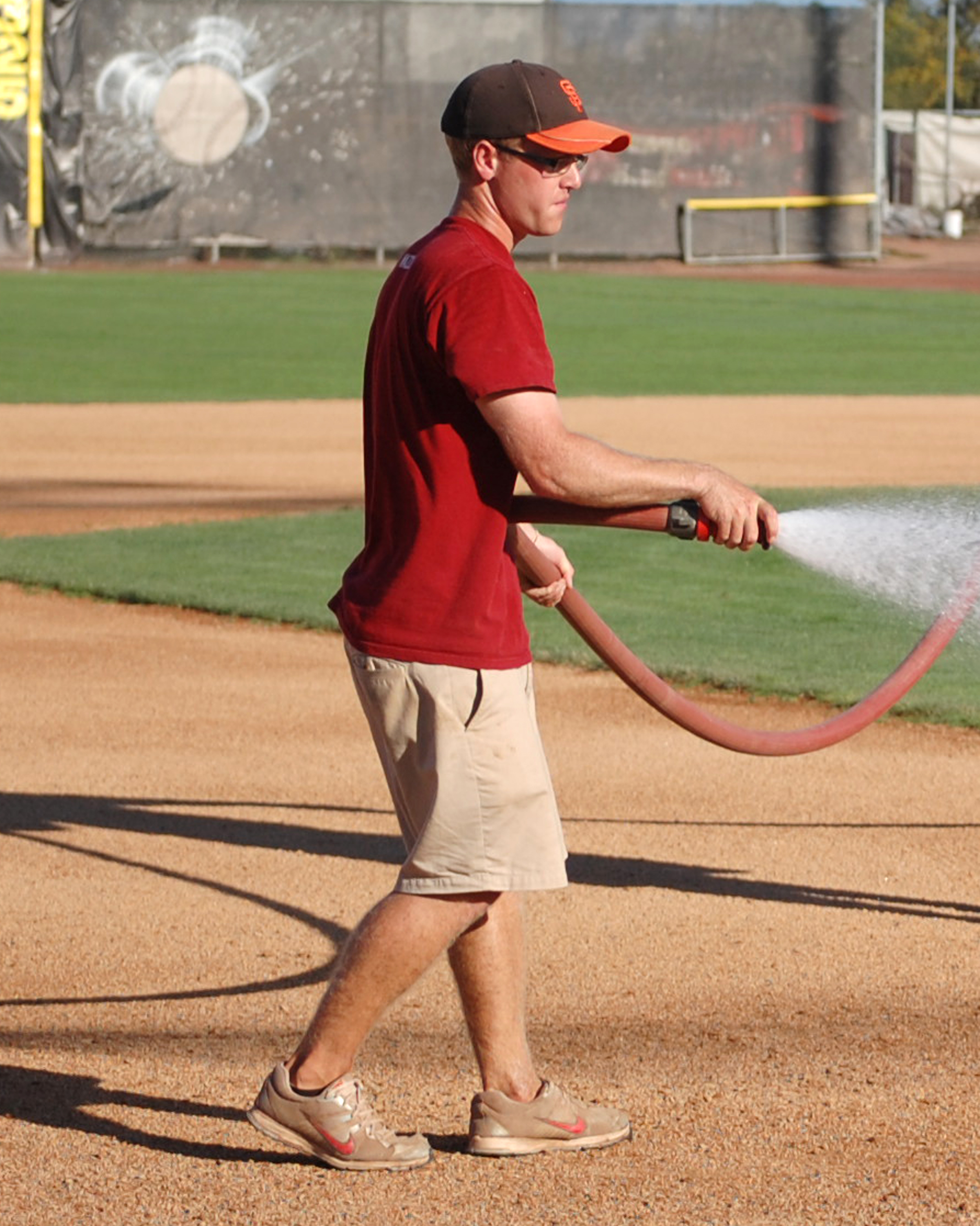 We all see the field. We all enjoy the beauty of the green, neatly cut grass, and the perfect flow of the dirt in the infield, but we never stop to think ‘dang the grounds crew is really good.’ It is the grounds crew that puts in countless hours, from early morning, through the heat of they day, and some times late into the night making sure that the field is in the best possible shape for each and every game.