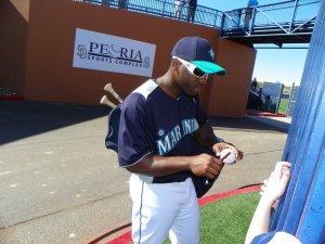 want to. There is a second field where some of the younger major league players warm up that does require them to walk right through the fans and there is where a lot of guys will sign. The only down side to Peoria right now is that neither the M’s or Padres are very strong teams, but if you are a fan willing to get autographs of young guys that have a lot of potential then this complex is great.