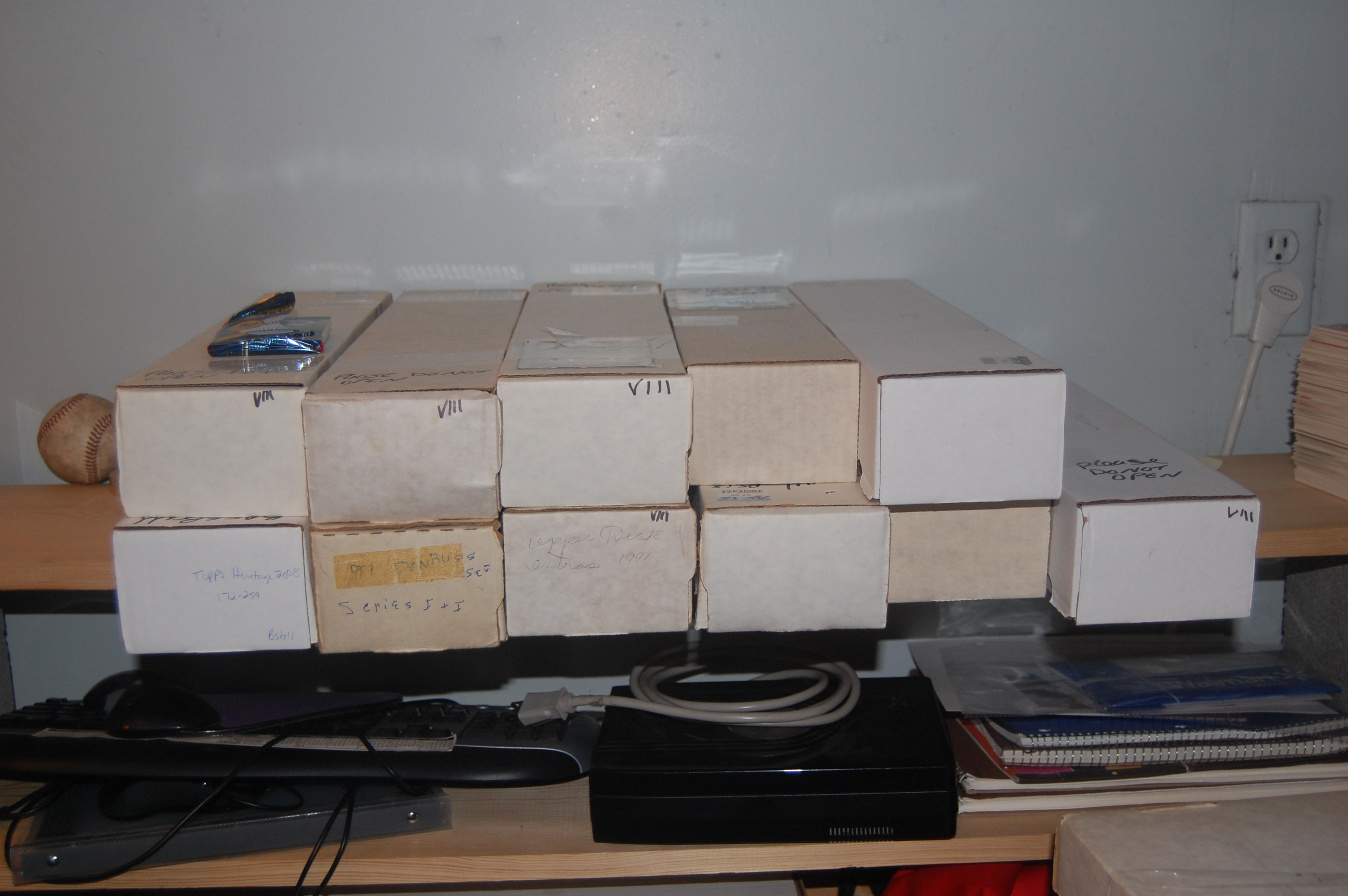 Discover totals: Eleven 800 card count boxes. Four 3,200 car count boxes. One beat up but still full 5,000 card count box. I’m estimating somewhere around 25,000 total cards added to my collection in one afternoon.