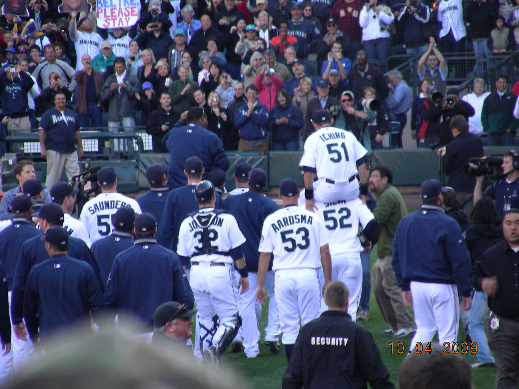Going into the 9th inning the Mariners were up 4-3 and Junior was coming up and he was 0-3. He ended up hitting a single and being replaced by a pinch runner. Obviously he got a huge standing ovation since most of the 32,000 fans there thought it could be his last game. After the game all players came out to acknowledge the fans and Junior along with Ichiro ended up being carried around the field on a couple different player’s shoulders. It was a great moment and something I will never forgot.