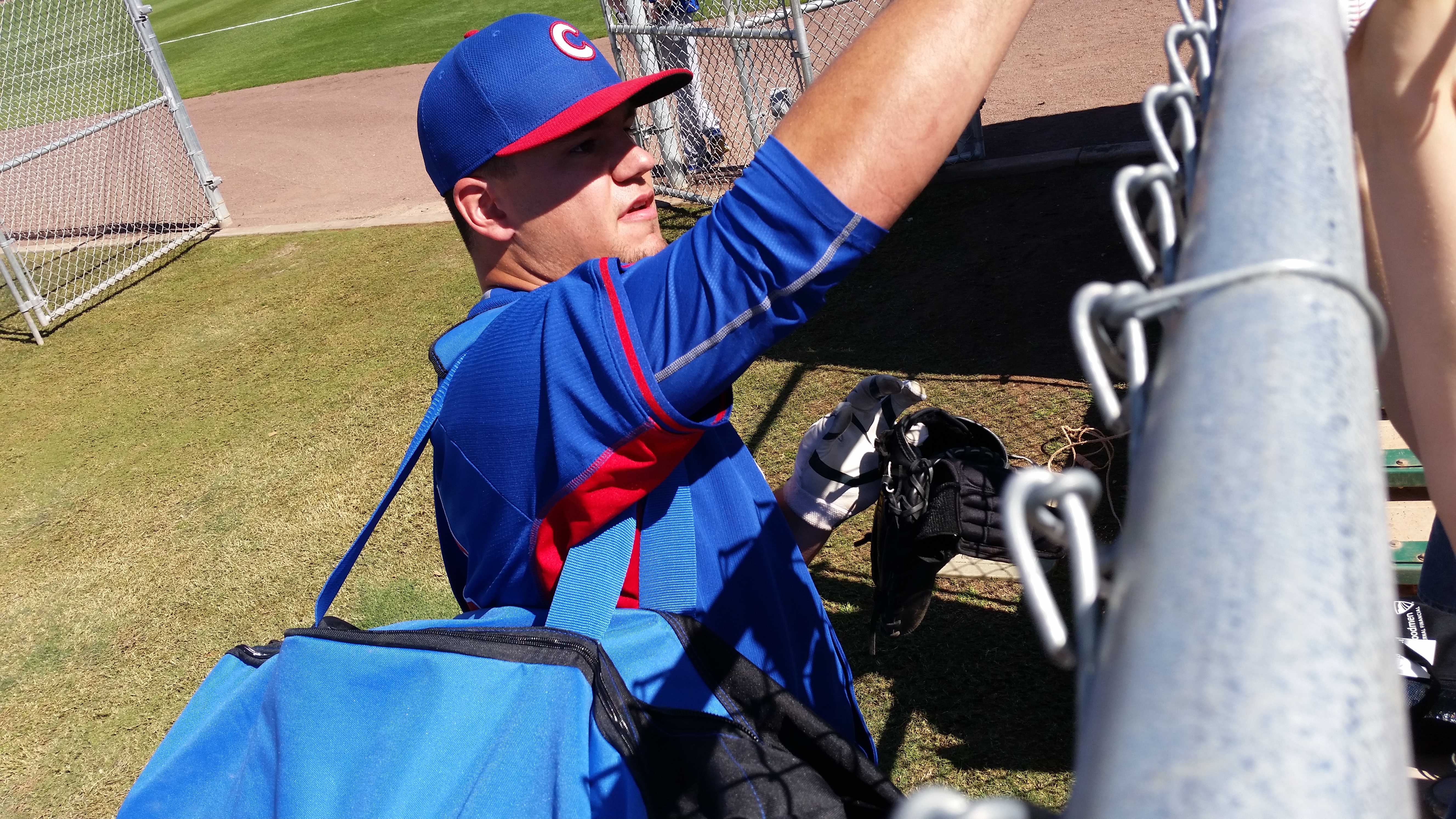 Before the workouts began on Friday, I was able to get Randy Bush. Later, I saw Kyle Schwarber and he stopped (I had to hand him things over a fence, but it worked) and he signed for me and a few others. Some time later, someone cornered Theo Epstein and the race was on. I showed up as she stopped him and then here came another person, and then another and another………..whew! Glad I was there quick.